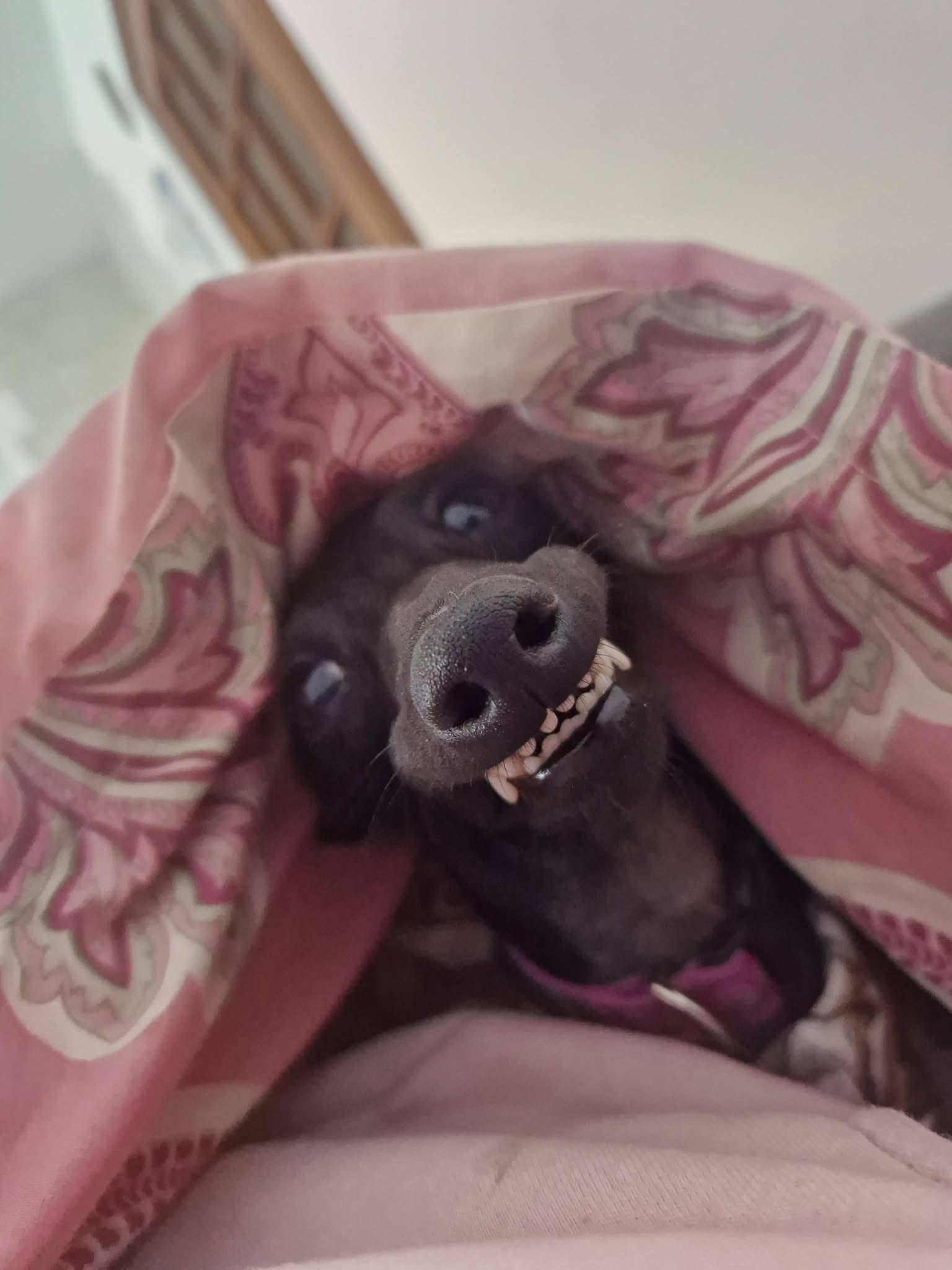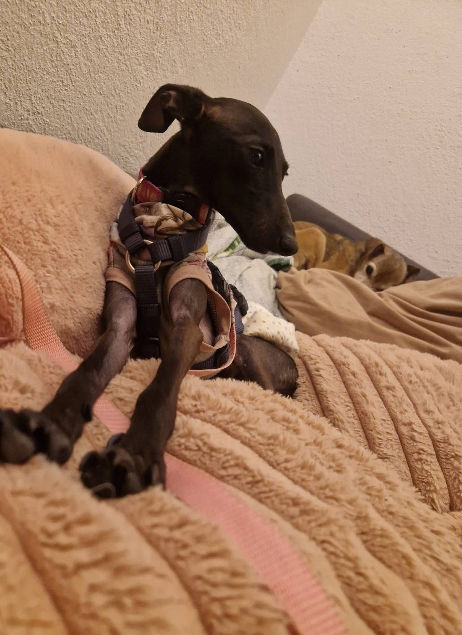 Sie wünscht sich Menschen, die Geduld und Erfahrung mitbringen und unbedingt ein vorhandenes Windspiel in passendem Alter als Gefährten, das mit ihr spielt und kuschelt.