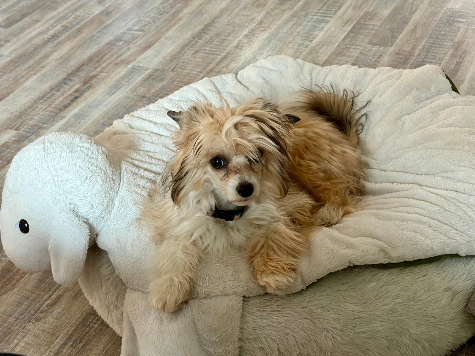 Coco ist eine zarte, sehr kleine Power Puff Hündin. Sie ist rassetypisch nicht aufgedreht und genießt es eng bei ihrem Menschen zu sein...wenn es geht natürlich auf dem Schoß, aber sie legt sich falls da schon besetzt ist, auch auf die Füße ihres Zweibeiners. Mit Menschen, egal ob groß oder klein, ist sie freundlich und aufgeschlossen.