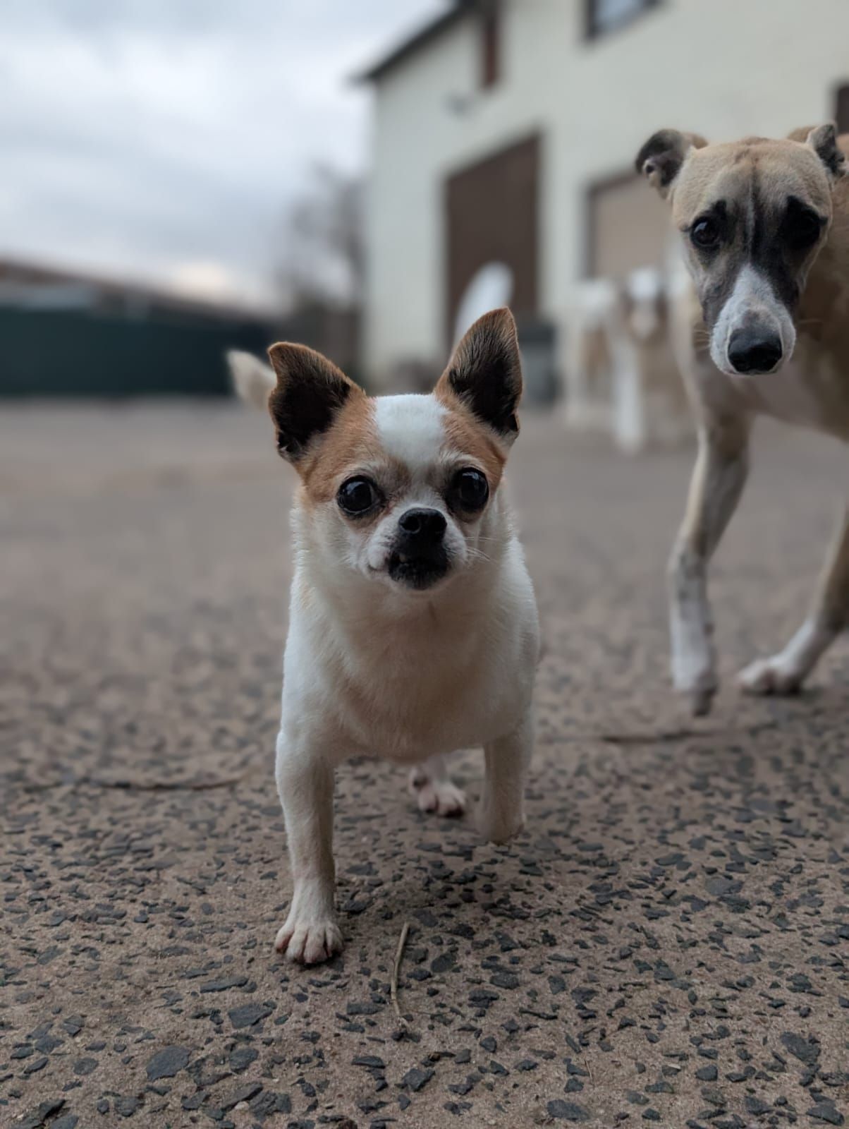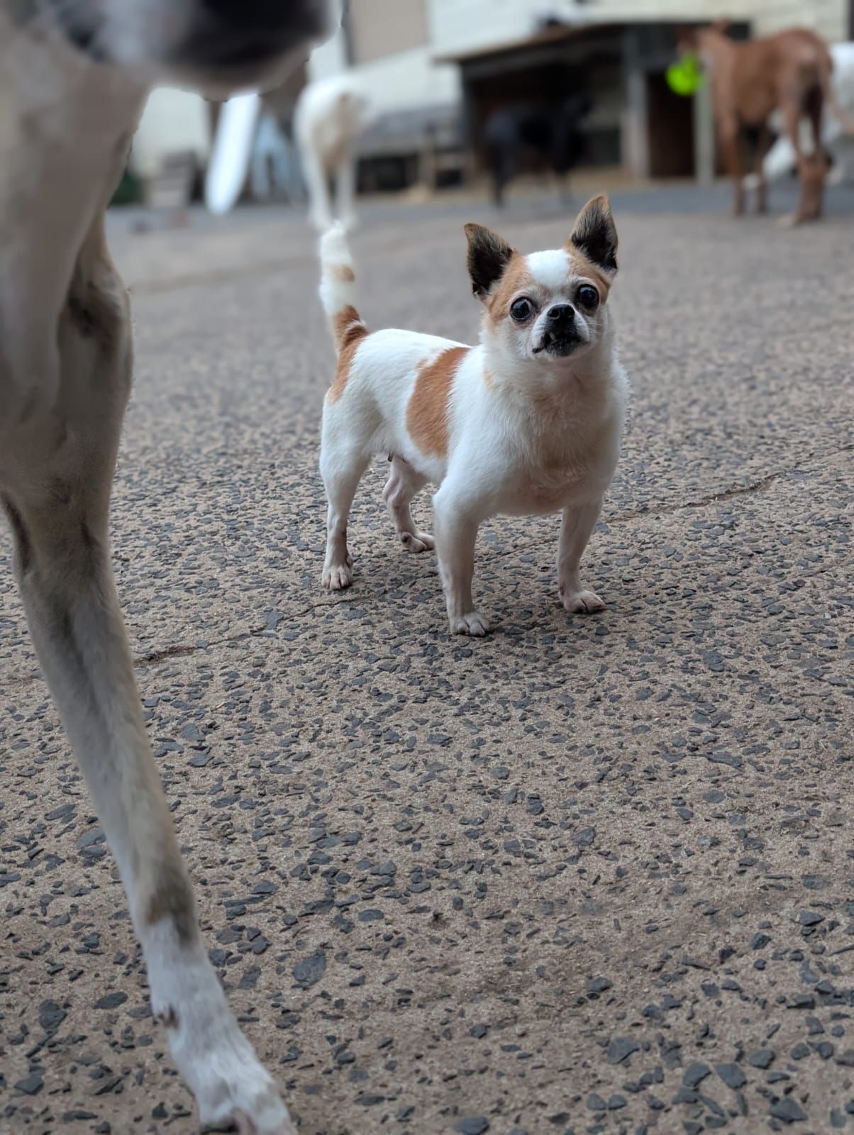 ChiChi lebt in seiner Pflegestelle mit kleinen Hunden und mit Windhunden zusammen - vor allem die Windhunde haben es ihm angetan. Er liebt es mit ihnen zu spielen und zu toben.