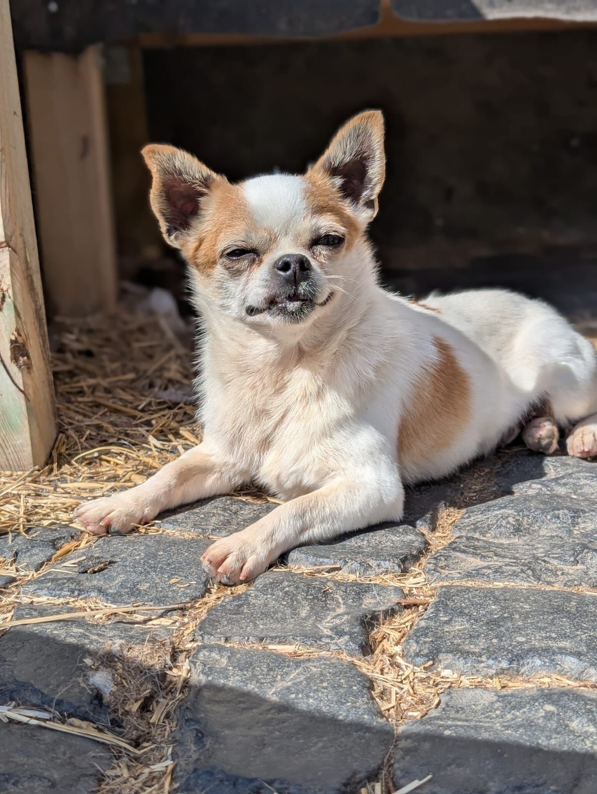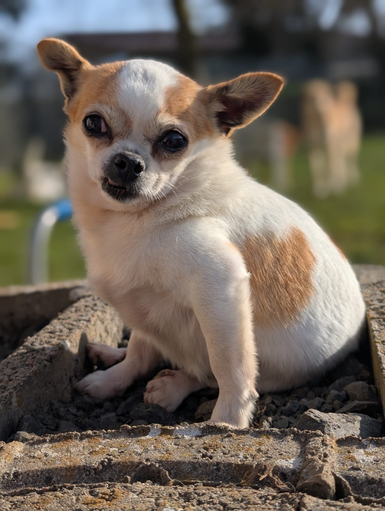 Sie ist ganz Chi eine laufende Charme-Offensive, hat mit nichts und niemandem ein Problem und lebt in der großen Hundegruppe in ihrer Pflegestelle glücklich und zufrieden ihr bestes Leben.