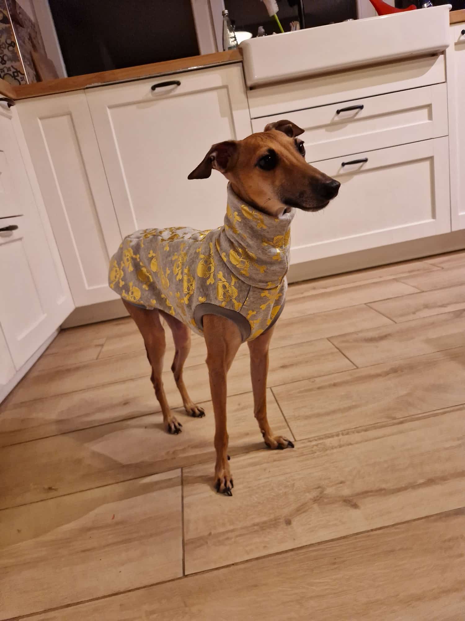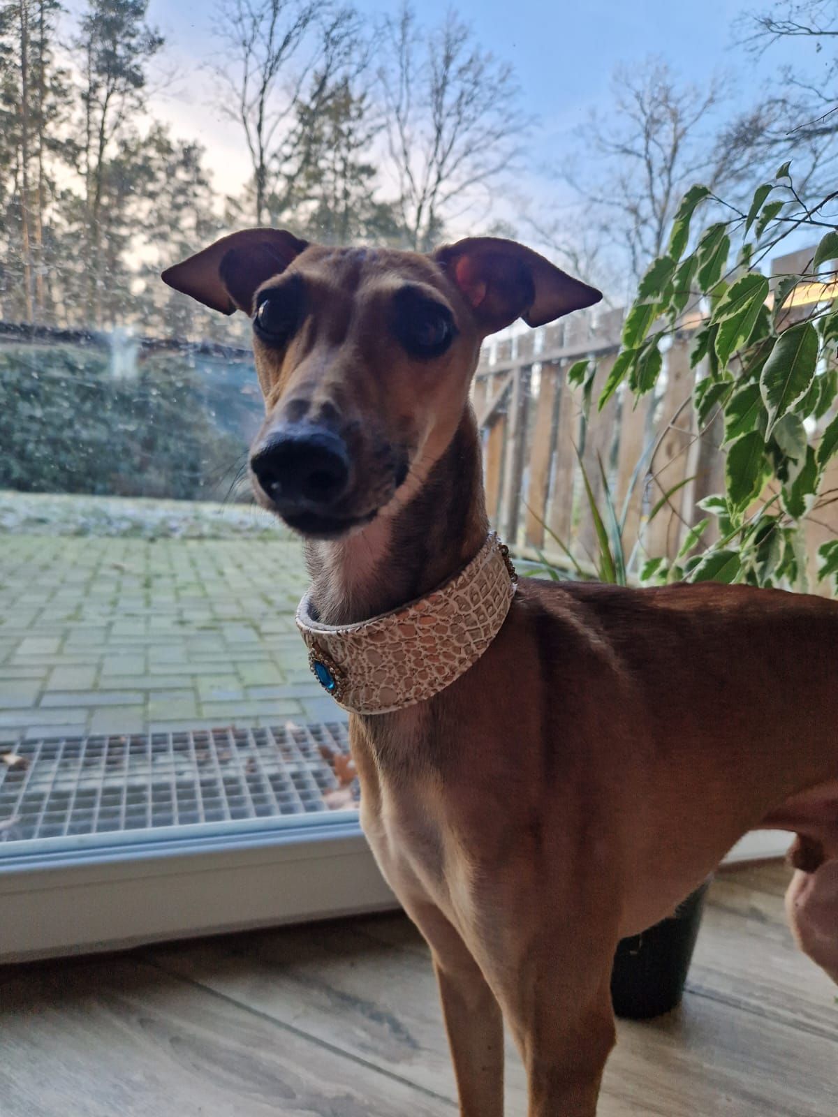Windspieltypisch braucht sie den Körperkontakt zu ihrem Menschen und zu den anderen Hunden, wie die Luft zum Atmen.
