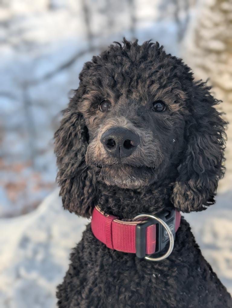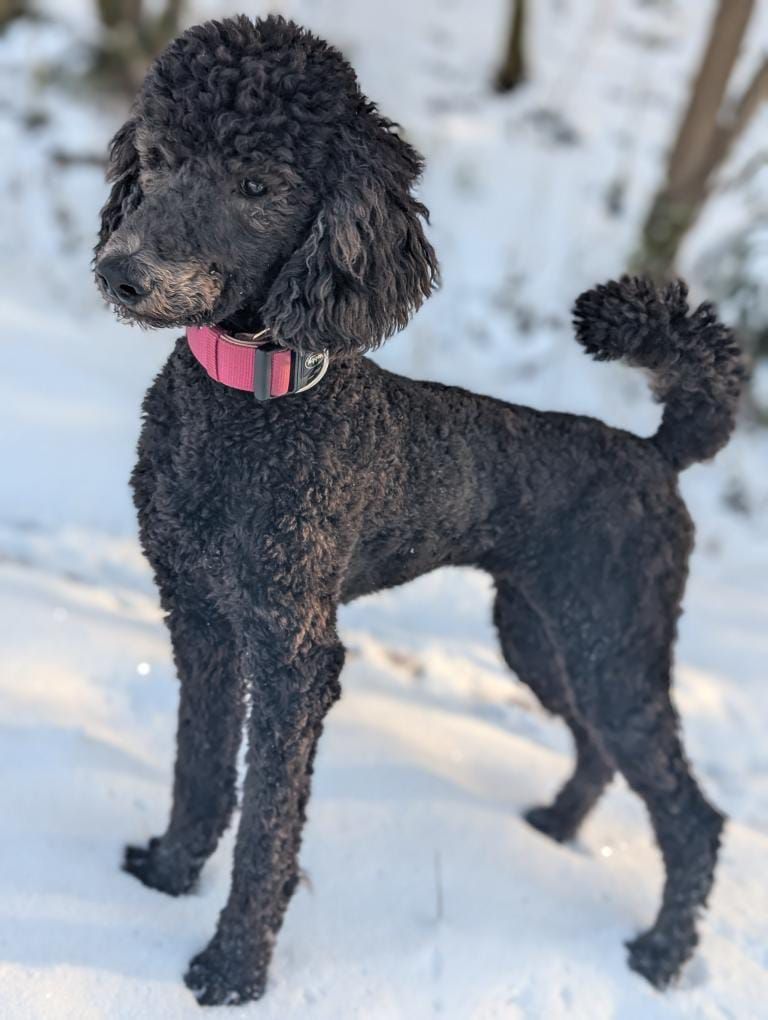 Königspudel sind außergewöhnlich kluge, sensible und menschenbezogene Hunde. Sie wollen nicht einfach „nebenher laufen“, sondern aktiv in das Leben ihrer Menschen eingebunden sein. Sie brauchen geistige Auslastung, klare Strukturen, liebevolle Führung und Beschäftigung, die Körper und Kopf gleichermaßen fordert. Sima ist dabei sehr verschmust, sucht die Nähe, ist jedoch nicht aufdringlich – sie genießt Aufmerksamkeit genauso wie ruhige gemeinsame Momente.